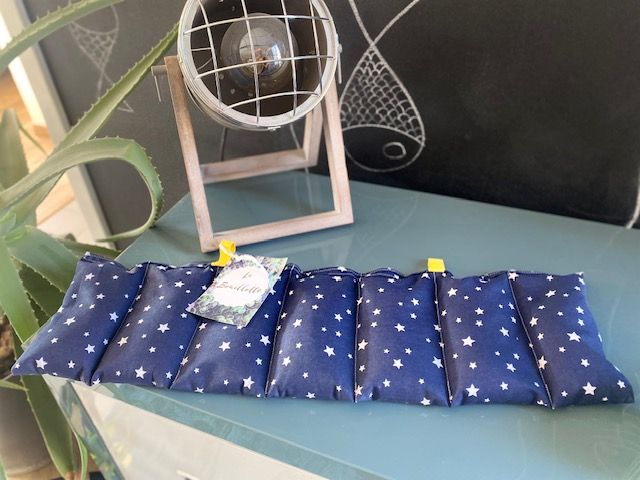 Bouillotte en graines de lin bio - longue 15x56 cm - Tissu étoile bleu marine